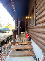 基礎高の重厚感のあるログハウス。外壁塗装を2022年9月に研磨、洗浄、キシラデコール塗布。