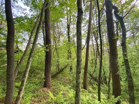 敷地は南に下がっている土地になり、木々を伐採すると日当たりも良いでしょう。