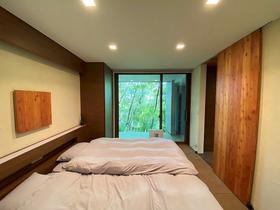 1Fには来客用の寝室があります。デッキにも出られるホテルのような仕様です。