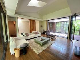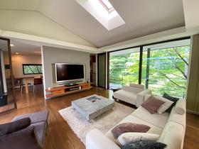 鉄筋コンクリート造の2階建てで、1階部分はガレージとなっております。室内は本物の空気感と言いますか、高気密の質の高い空間に仕上がっており、ハイクラスのホテルに滞在しているかのような感覚です。自然素材もふんだんに使われており、スタイリッシュさとナチュラルさ、そしてモダンさを兼ね備えた稀有な物件かと思います。さらにこちらの物件の魅力は全天候型のアウトドアテラスです。リビングとシームレスにつながる空間は、雨の日でさえ特別な空間にしてくれます。現状は木が日光を遮り涼しい空間にしてくれていますが、敷地内の木を切ると抜け感のある眺望が開けると思います。昨今の中古マーケットはいわゆる「かっこいい!!」と思える物件が少ないですが、こちらは玄関に入った瞬間に「かっこいい!!」と思える物件です。新築建売が5億以上もするマーケットで、質が高くすぐに使えるこちらの物件は時間と空間を買うという意味ではお買い得です。ぜひ見学にいらしてください。