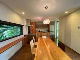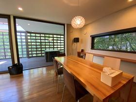 リビング横のダイニングの様子。こちらも緑も見ながら食事ができる仕様です。