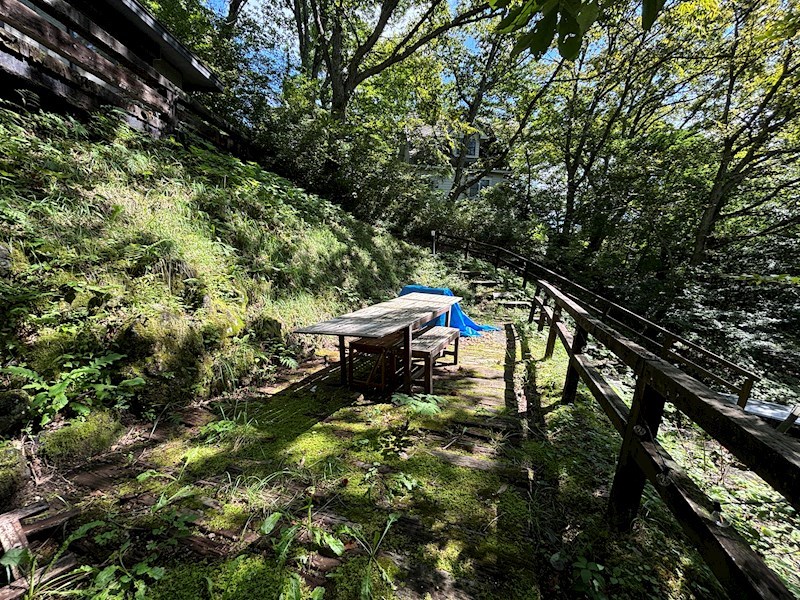 前面道路や周囲の視線が全く気にならない丘の上の戸建です。その敷地の上部には見晴らしの良い展望台があり、ゆっくりと過ごしたり、ノートパソコンで仕事をしたりと気持ち良く過ごせるエリアとして重宝しそうです。また敷地内にプライバシーが確保されたバーベキュースペースがあり、軽井沢での別荘ライフが楽しめる戸建だと思います。大自然に囲まれてエアコンがなくても快適に過ごせる別荘をお考えの方にピッタリです。