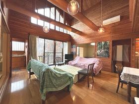 少し高台で風がよく通る環境です。千ヶ滝のメイン通りから少し入った閑静かつ、適度な利便性もある立地です。山小屋のような雰囲気を楽しめる別荘。緩やかな傾斜のある敷地ですが、お庭として遊べる場所もあり、少し高台なのでプライベート感もあります。建物は南向きで日当たりが良いうえに、リビングにいると清々しい風が良く通ります。これだけの状態が良い別荘も珍しく、一見の価値ありです。お問い合わせお待ちしております。