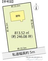 主な接道 | 私道、南、幅員:5m、接道長さ:22.3m、舗装あり、主たる接道 | ||