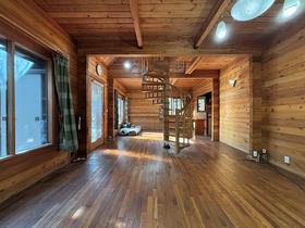 旧軽井沢と中軽井沢の間に位置するこの泉ヶ丘別荘地は、標高約1200mと夏でも涼しく快適で、環境と利便性を兼ね備えた場所になります。レストランや温泉等、滞在に便利なお店も揃い魅力的ですね。こちらの物件に関して、まずログハウスということで、お好きな方にはたまりませんね。オーナー様がご定住されておりましたので、経年劣化もありますが、まだまだ十分ご利用いただけます。外の景色は一面緑という様子で、ウッドデッキでの食事は別荘ならではの楽しみです。お問い合わせお待ちしております。