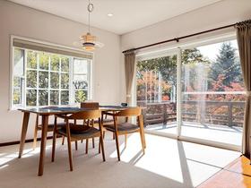 造りの良さと最高の借景に一目ぼれして購入をしました。せっかく自分好みにリフォームをしたのですが、諸事情により売却をすることにしました。景色は最高の一言です。紅葉の時期は特に美しく、軽井沢の秋晴れと深い赤に染まる木々は1日中見ていても飽きることがありません。テラスで過ごす時間も至福の時間でした。離山別荘地は斜面地が多いですが、この物件は平坦にアプローチができ、アクセスで困る事はありません。平坦地と傾斜地の良いところどりをしている立地で、これまでたくさん物件は見てきましたが唯一無二の立地だと自信があります。