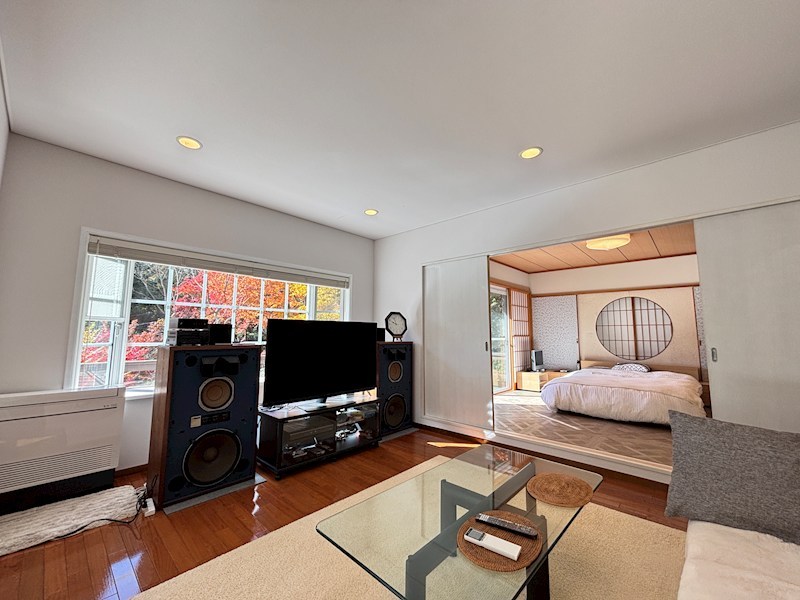 借景は見事としか言いようがない開放的で、南向きで日当たりも良好です。冬は日光の暖かさをダイレクトに感じることができる間取りとなっています。お庭は平坦な個所も多く、庭いじりや様々な植栽を楽しむことができます。また、室内のリフォームもアクセントクロスを多用し、モダンな邸宅へと生まれ変わっています。築年数は新しくはないですが建築当時に贅沢にしっかりと建築されたことは入室をすればわかると思います。もちろんオールシーズンご使用いただけます。