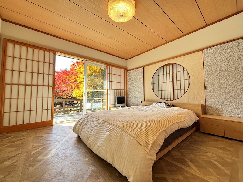 リビング続きの寝室。京都の高級旅館のようです。朝日を浴びて気持ちよく起床できそうです。