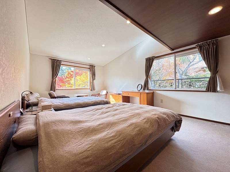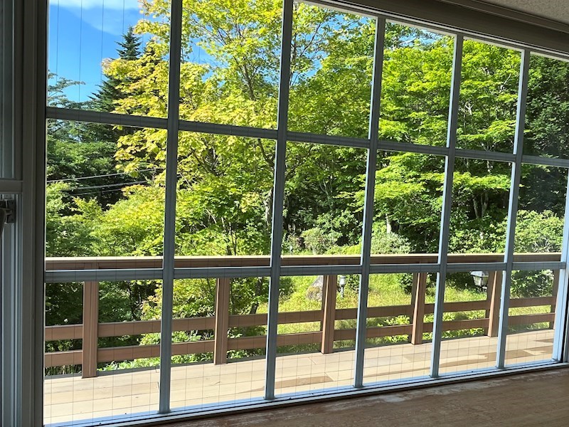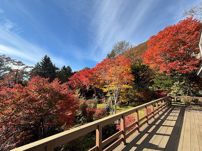 造りの良さと最高の借景に一目ぼれして購入をしました。せっかく自分好みにリフォームをしたのですが、諸事情により売却をすることにしました。景色は最高の一言です。紅葉の時期は特に美しく、軽井沢の秋晴れと深い赤に染まる木々は1日中見ていても飽きることがありません。テラスで過ごす時間も至福の時間でした。離山別荘地は斜面地が多いですが、この物件は平坦にアプローチができ、アクセスで困る事はありません。平坦地と傾斜地の良いところどりをしている立地で、これまでたくさん物件は見てきましたが唯一無二の立地だと自信があります。