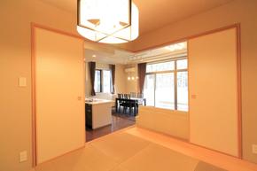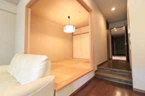 リビングに隣接の和室は、粋な小あがり仕様になっております。