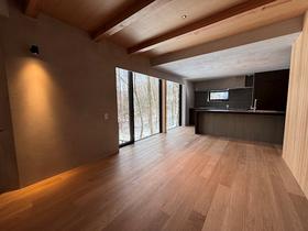 千ヶ滝中区でもメイン通り沿いにある利便性の良い場所です。傾斜をうまく利用したステップフロアデザイン。冬期でも車での行き来も比較的に楽な場所ですから、通年利用可能。道路も広くゆったりとしていますので運転が苦手な方にも最適かと思います。森に囲まれたデッキで森林浴をしながらティータイムを楽しんだり、近隣にある施設でのんびりと温泉やお食事に出かけたりするのも良いでしょう。機能面も兼ね備えた全部屋床暖付きのモダン住宅です。是非ともお問合せくださいませ。