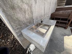 ウッドデッキ横には嬉しい洗い場設備を完備