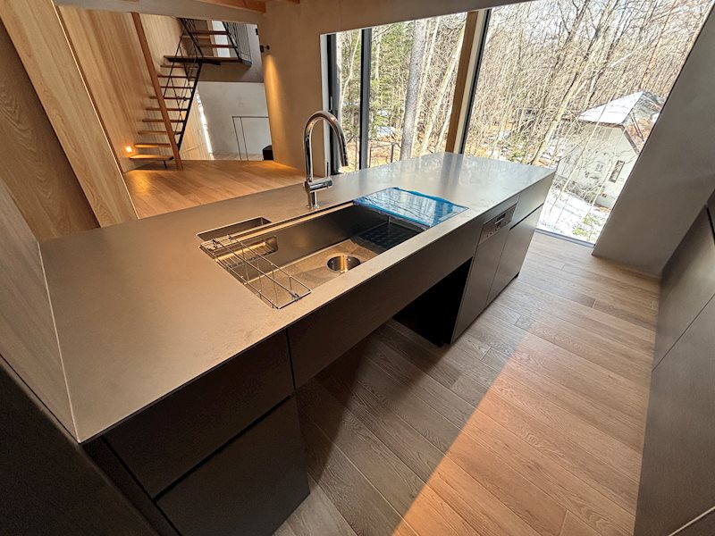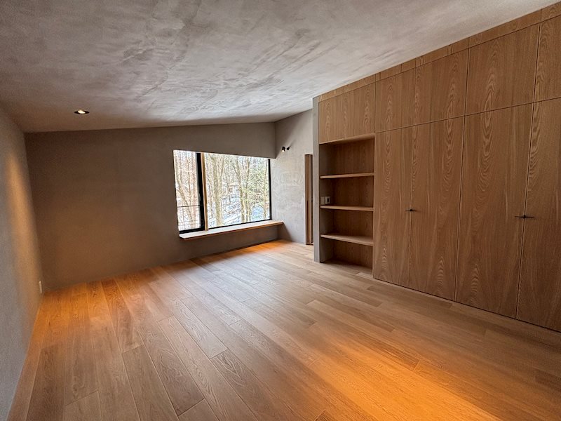 千ヶ滝中区でもメイン通り沿いにある利便性の良い場所です。傾斜をうまく利用したステップフロアデザイン。冬期でも車での行き来も比較的に楽な場所ですから、通年利用可能。道路も広くゆったりとしていますので運転が苦手な方にも最適かと思います。森に囲まれたデッキで森林浴をしながらティータイムを楽しんだり、近隣にある施設でのんびりと温泉やお食事に出かけたりするのも良いでしょう。機能面も兼ね備えた全部屋床暖付きのモダン住宅です。是非ともお問合せくださいませ。