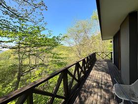 丸紅別荘地の管理事務所から約170mの好立地から中古別荘のご紹介です!土地は、全体が傾斜しておりますが、道路から玄関までスロープで出入りすることができ、高低差を活かした借景をお楽しみいただけます。建物は、使いやすい2LDKの邸宅で、L型の大きなウッドデッキが特徴的です。また、全部屋二重サッシを採用しており、春や秋などの寒い季節も安心です!また、本物件の敷地内に駐車場はございませんが、歩いてすぐの場所に共用駐車場がございますので、ストレスなくご利用いただけます!ご興味がございましたら、ぜひご見学へお越しくださいませ。