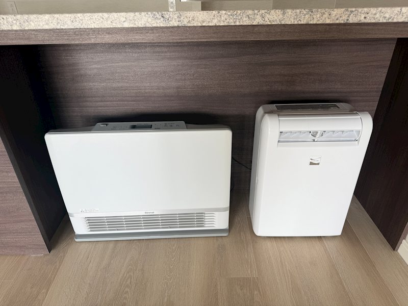キッチンカウンターダイニング側の下部には除湿器とファンコンベクターがついています。(洋室にも設置済み)