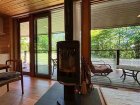 冬はリビングの薪ストーブで暖かく過ごせます。