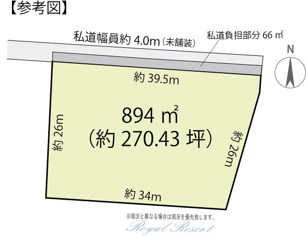 主な接道 | 私道、北、幅員:4m、接道長さ:39.5m | ||