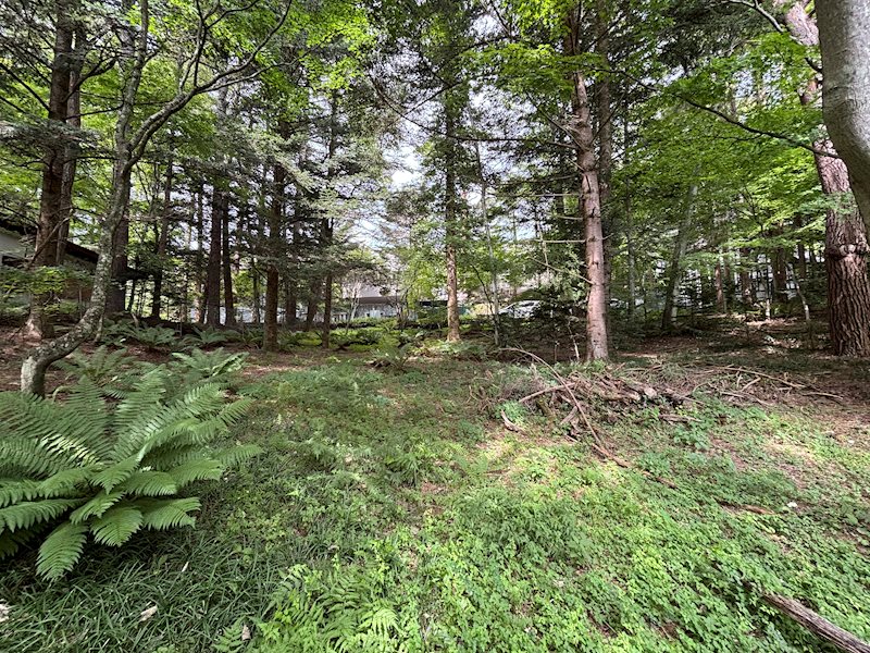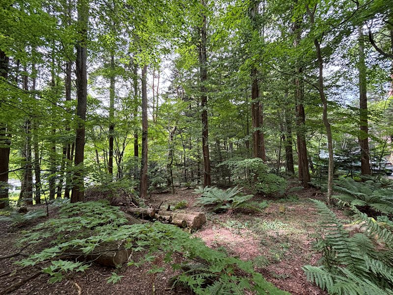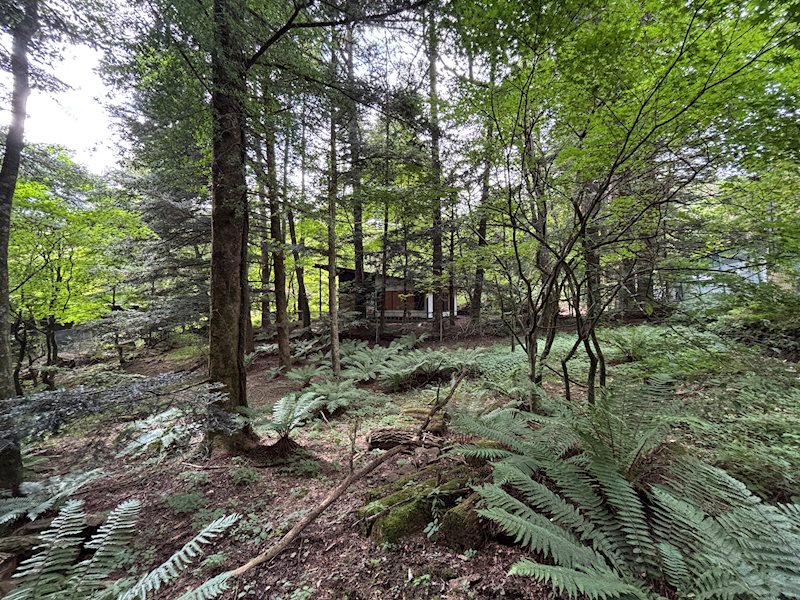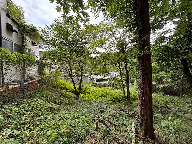 敷地南中央から東方向、木を間引いたら陽当たりも良さそうです。