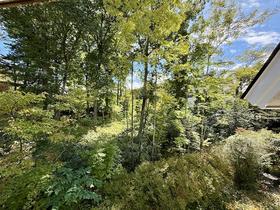 駐車スペースから南側にかけて。敷地内の樹木でムササビウォッチングができることも。訪れるゲストを喜ばせてくれます。