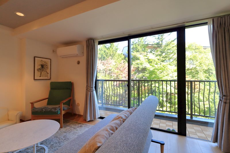 数年前に購入して一からリフォームしたお部屋です。お部屋に入ると目に飛び込んでくる緑の風景と、心地よい小川のせせらぎがとても気に入り、私も含め家族で楽しんで使っておりましたが、一番楽しんでいた家族が海外に行くことになり、私も仕事が忙しく頻繁にこれなくなってきたため、どなたかご趣味の合う方がいればお譲りしたいと思います。マンションにいながら軽井沢らしいお部屋です。どうぞよろしく。