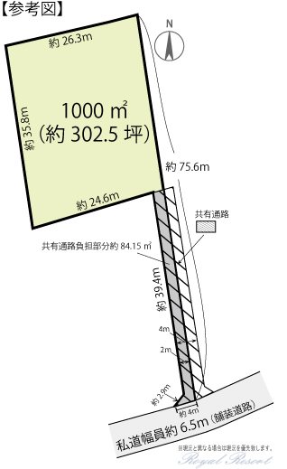 | 主な接道 | 私道、南、幅員:6.5m、接道長さ:2m、舗装あり | ||