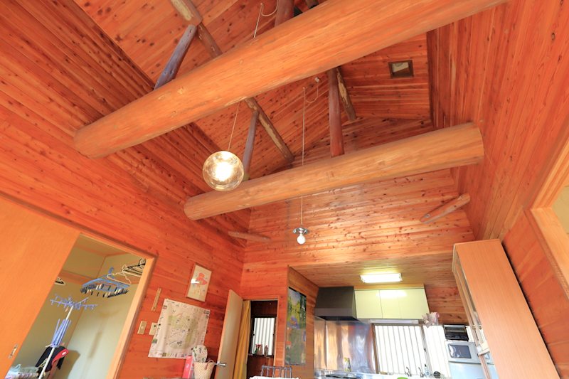 大きいな梁と吹き抜け天井。