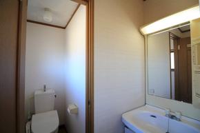 こちらは洗面室の様子です。窓があり明るく清潔感がございます。