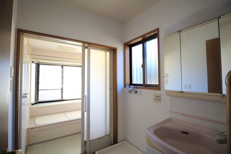 こちらは洗面室の様子です。窓があり明るく清潔感がございます。