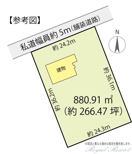 | 主な接道 | 私道、北西、幅員:5m、接道長さ:24.2m、舗装あり | ||