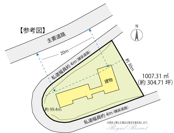 | 主な接道 | 私道、西、幅員:4m、接道長さ:99.4m、舗装あり | ||