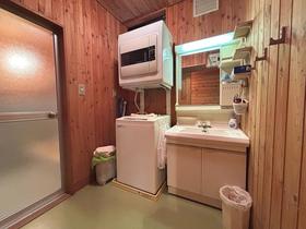 洗面脱衣所はシンプルですが板張りで別荘らしい雰囲気がございます。