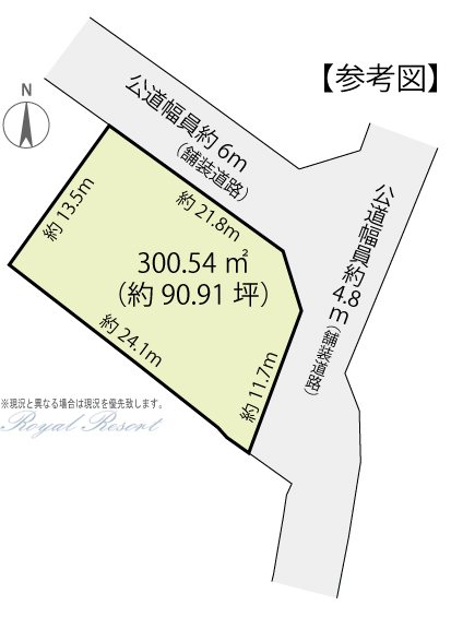 | 主な接道 | 公道、北東、幅員:6m、接道長さ:21.8m、舗装あり、主たる接道