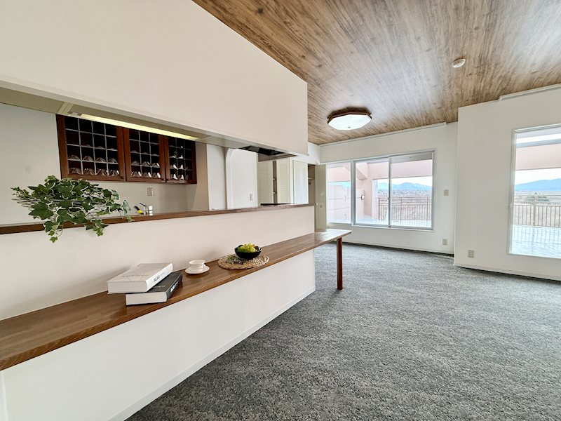 空と山並みを独り占めするような眺望は、最上階ならではの特別な景色。季節や時間帯ごとに表情を変える景色を、日常として楽しめます。