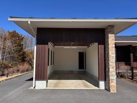 広大な敷地に佇むスタイリッシュな3LDKのガレージ付き平家別荘です。