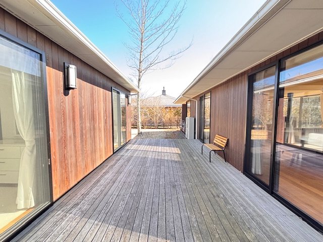 大きなウッドデッキからはご覧の景色。プライベート感があります。