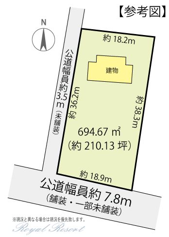 公道、南、幅員:7.8m、接道長さ:18.9m、舗装あり |