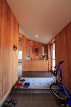 自転車を置いてもなおゆとりのある広々とした玄関の様子です。