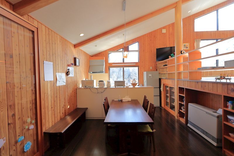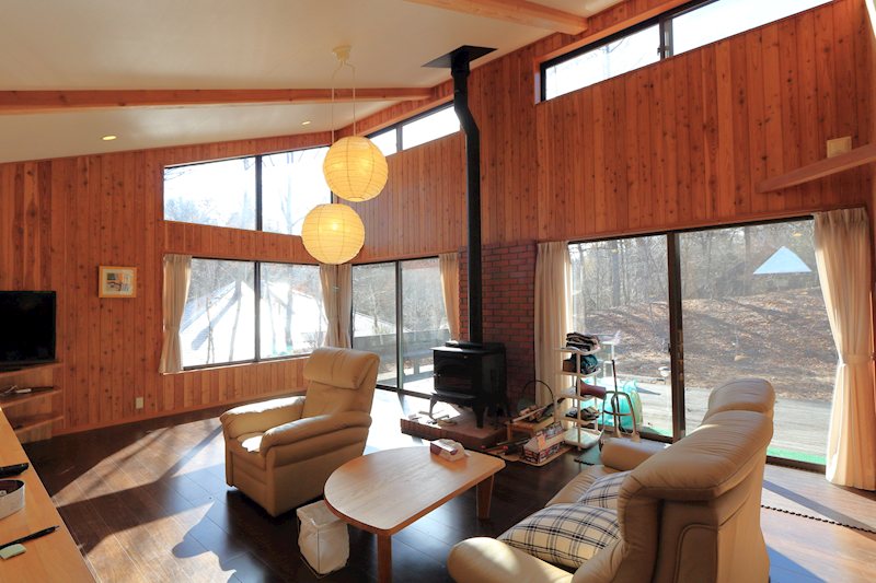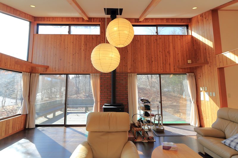 リビング中央に据えられた薪ストーブも、軽井沢には必需品と呼べる設備です。
