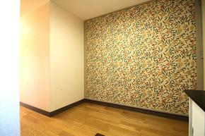 玄関を入った様子です。壁紙がモダンなアクセントに。