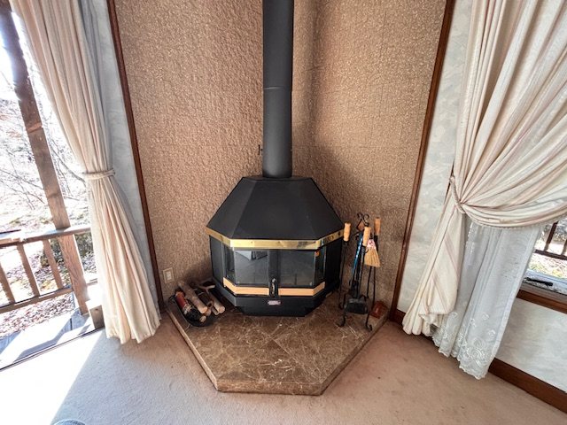 薪ストーブできらめく炎をと楽しめます。