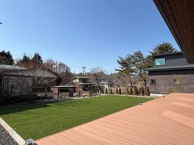 約140坪の平坦な敷地は貴重です!デッキは樹脂製でメンテナンスが容易です。