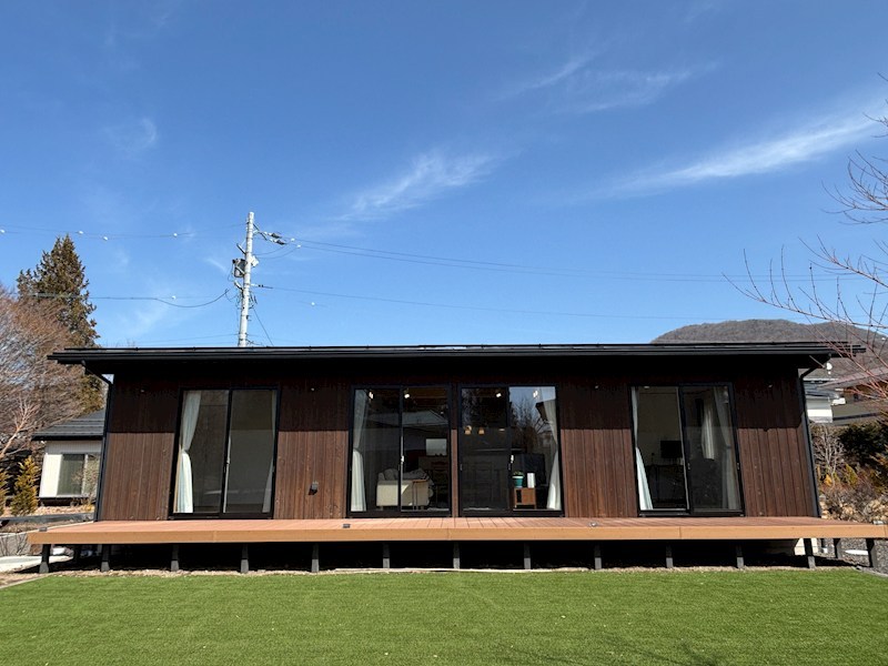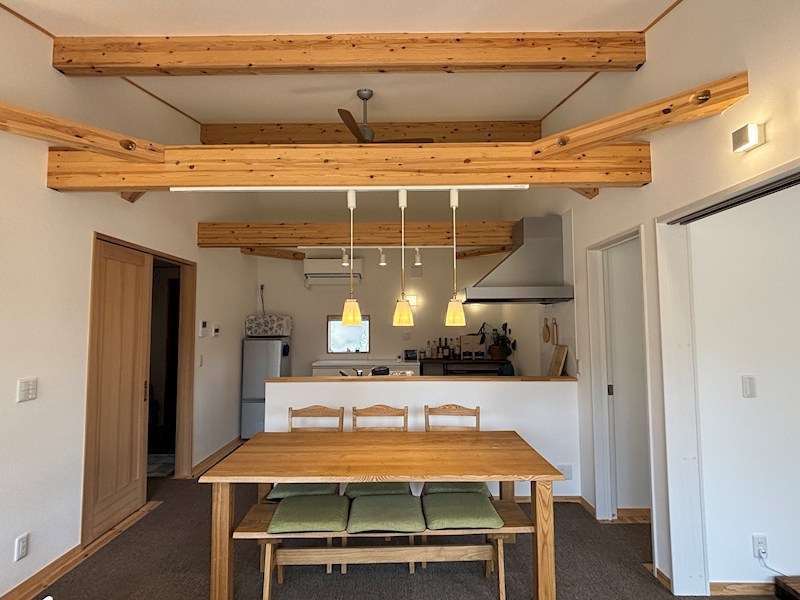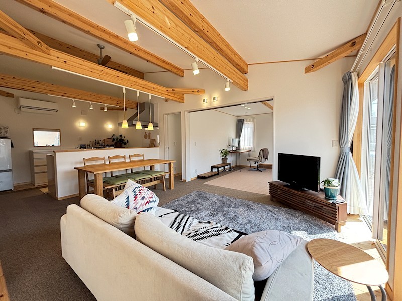 平家ですが天井が高く、開放的です。寒冷地仕様のエアコンがついていますので冬も安心してご利用頂けます。