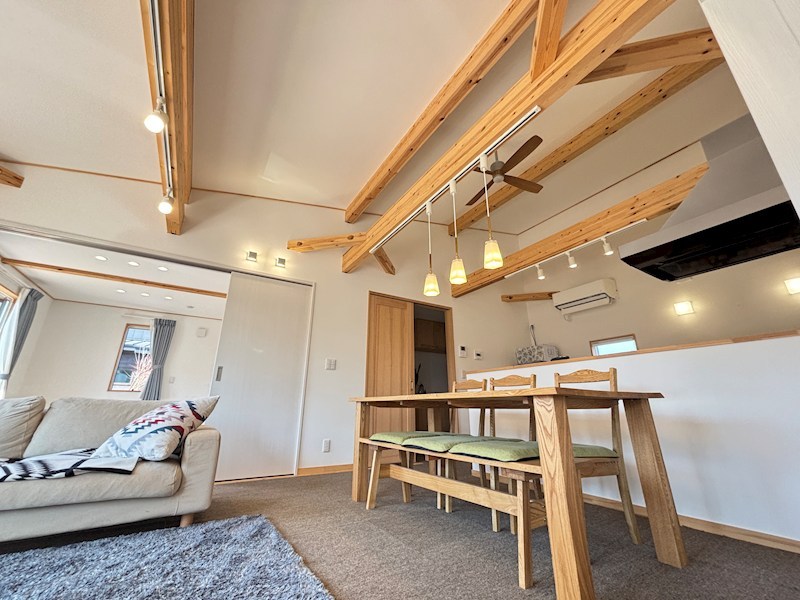勾配天井の解放感のあるLDK!南向きで明るい雰囲気です。