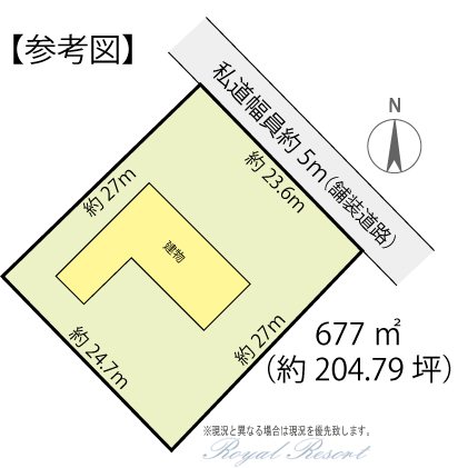 | 主な接道 | 私道、北東、幅員:5m、接道長さ:23.6m、舗装あり | ||