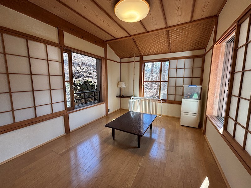 古き良き軽井沢の滞在を楽しめる、室内状態良好の平家物件が登場しました!床暖房とFFストーブ付きで、肌寒い季節も安心です。築年数は歴史がありますが造りの良さと意匠性を垣間見ることができます。眺望も良く、まるで森に浮遊しているかのような感覚になります。また、水廻りはリフォームされており、このまますぐに利用することが可能です。