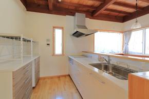 解放感のあるオープンカウンター仕様。コンロは安心安全なIHクッキングヒーターを備えております。