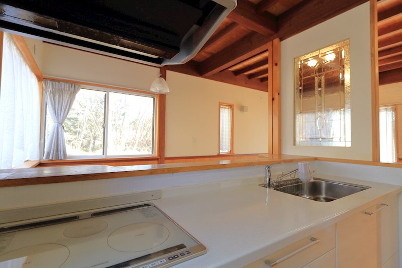 解放感のあるオープンカウンター仕様。コンロは安心安全なIHクッキングヒーターを備えております。