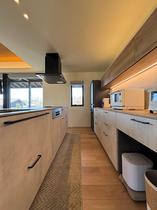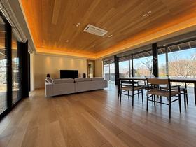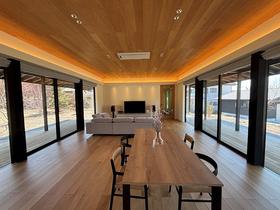 私たちがこの家を建てる際に最も大切にしたのは、「自然と景色を楽しむこと」でした。浅間山の眺望や庭の美しさが主役になるような、控えめで上質な佇まいを目指しました。リビングは、東西両面に設けた6mの大開口から深い軒とウッドデッキで室内と庭をシームレスにつなげ、庭の中にリビングがあるような空間を目指しました。夜はグレアレスダウンライトと間接照明が癒しの空間を演出します。細部のディテールまで、職人さんの技と私たちの思いを込めて丁寧につくった家です。御代田の豊かな自然と、この静かで上質な時間を引き継いでくださる方にお譲りできれば嬉しく思っております。