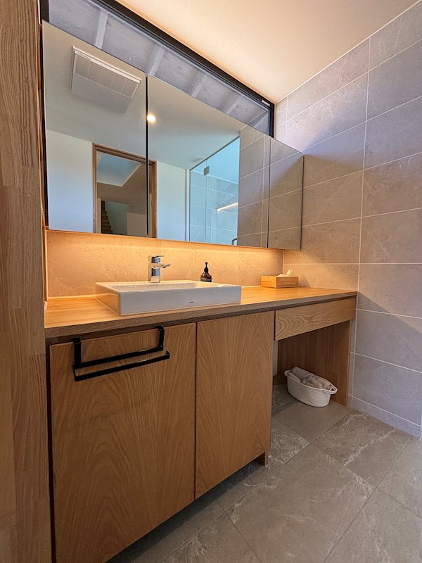細部までこだわりを感じられる2025年築の一戸建て。売主様のこだわりをお伝えいたします。家全体を「心地よい暗さの夜」を楽しめるように設計しました。玄関にはルイスポールセンの柔らかな光を、レストルームにはBoverのペンダントライトを配し、何気ない日常の動線の中にも上質さを感じられるようにしています。夜の帰宅時には柔らかい光の中に家が浮かび上がり、静かで上質な時間への期待が高まります。2階の寝室からは、浅間山や蓼科山の稜線が一枚の絵のように見えるよう窓を配置しています。朝夕で表情を変える山の景色を、暮らしの中で自然に味わえるのもこの家の大きな魅力です。ガレージにもこだわりました。大開口のオーバースライダーに加え、窓付きで明るく使いやすく、大型車2台をゆったり置ける広さがあります。正面には浅間山が見え、出発の気分を高揚させてくれます。庭にはレンギョウ、ドウダンツツジ、紅葉、ジューンベリーを植えており、春夏秋それぞれに違った表情を楽しめます。季節の移ろいが庭の景色に表れ、その変化を身近に感じながら暮らせることも、この家ならではの贅沢でした。