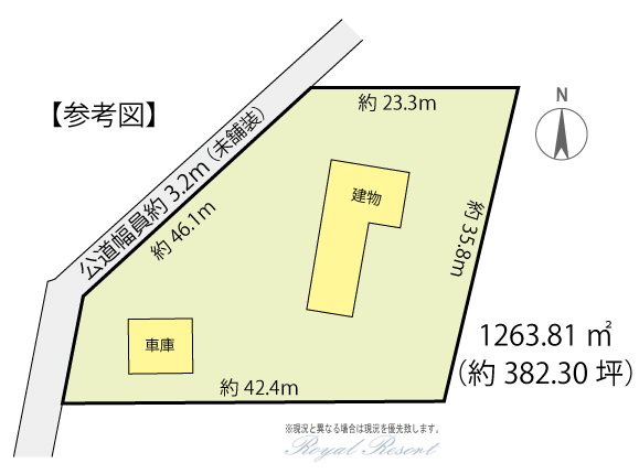 | 建物面積 | 157.33m² (47.59坪) | 土地面積 | 1,263.81m² (382.30坪) |